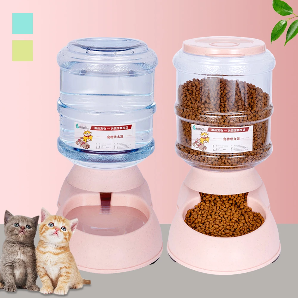 3 75l Pet Automatic Dog Feeder Cat Drinking Feeding Water Bowl Dogs Plastic Bottle Animal Food Container Dispenser Two Styles Cat Feeding Watering Supplies Aliexpress